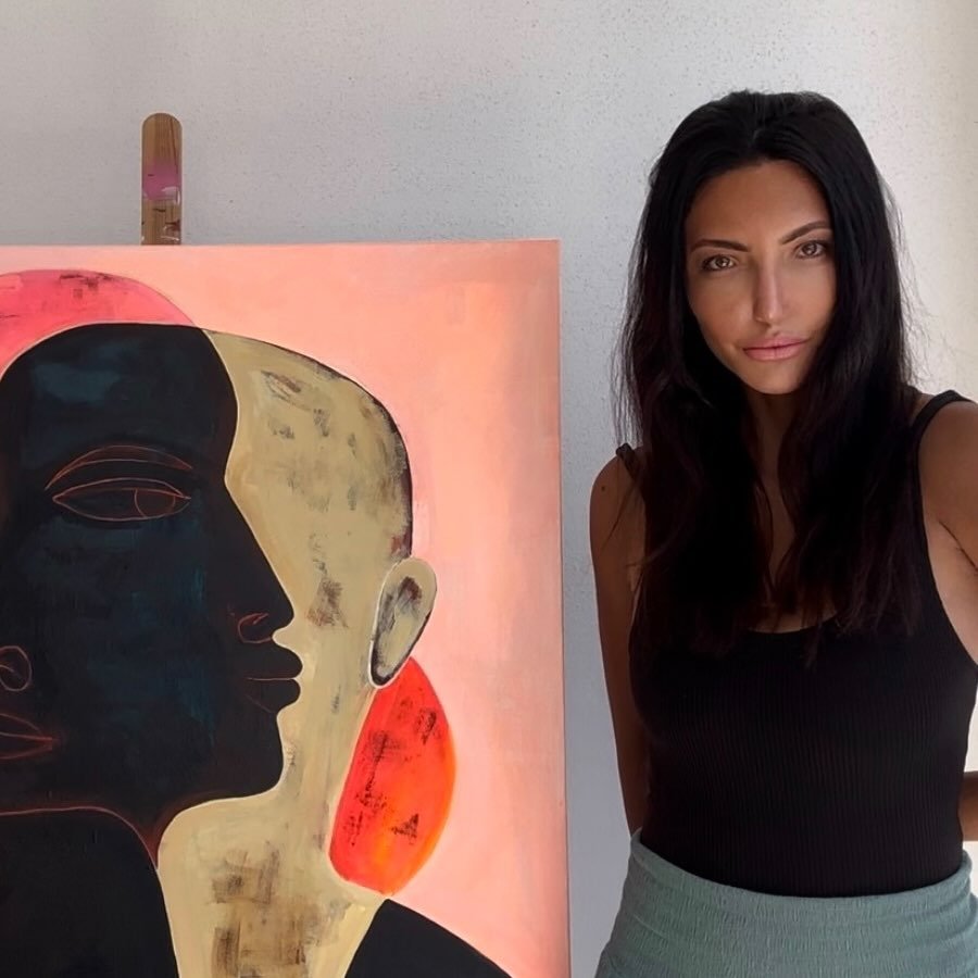 At the Women’s Artist Collective, we celebrate the transformative power of art created by women for women. Today, we are honored to spotlight Natasha Bakhshov, a self-taught contemporary artist whose vibrant acrylic paintings explore themes of identity, emotion, and the enduring muse.